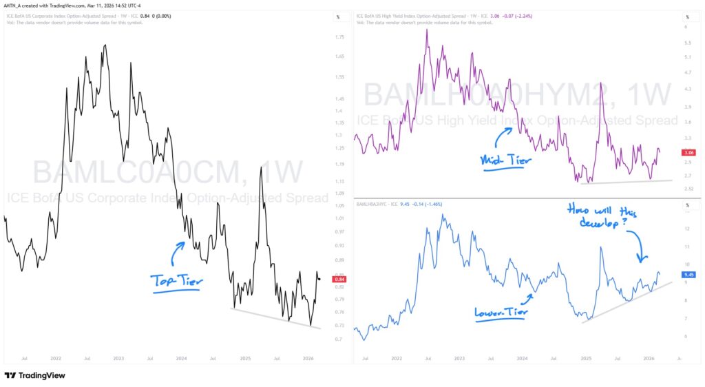 This “potential cracking” at the bottom of the credit tier may soon manifest in relative strength ratios: