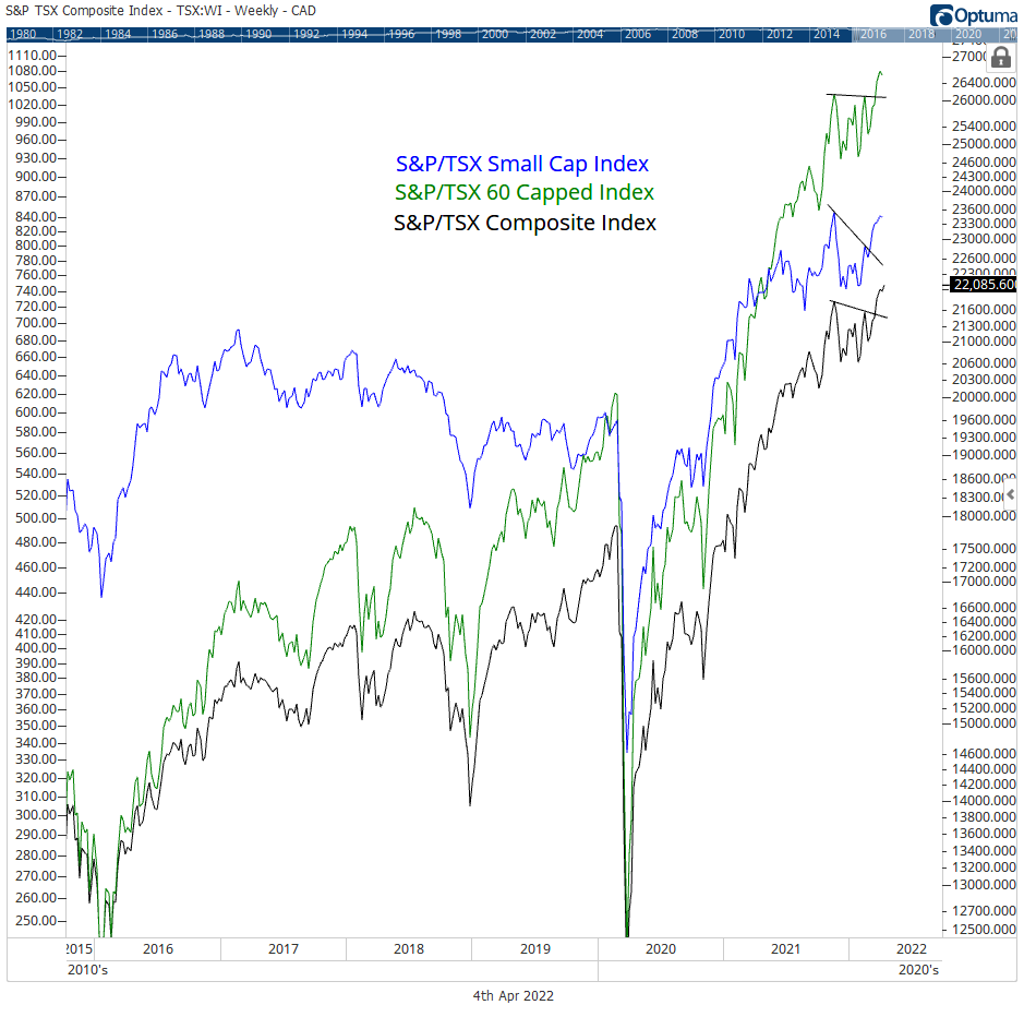 Canadian equity markets have benefited from rising energy prices, commodities, and global base metals themes.